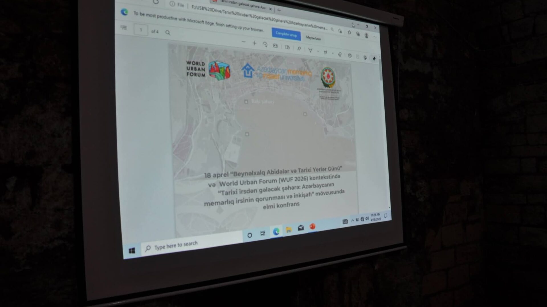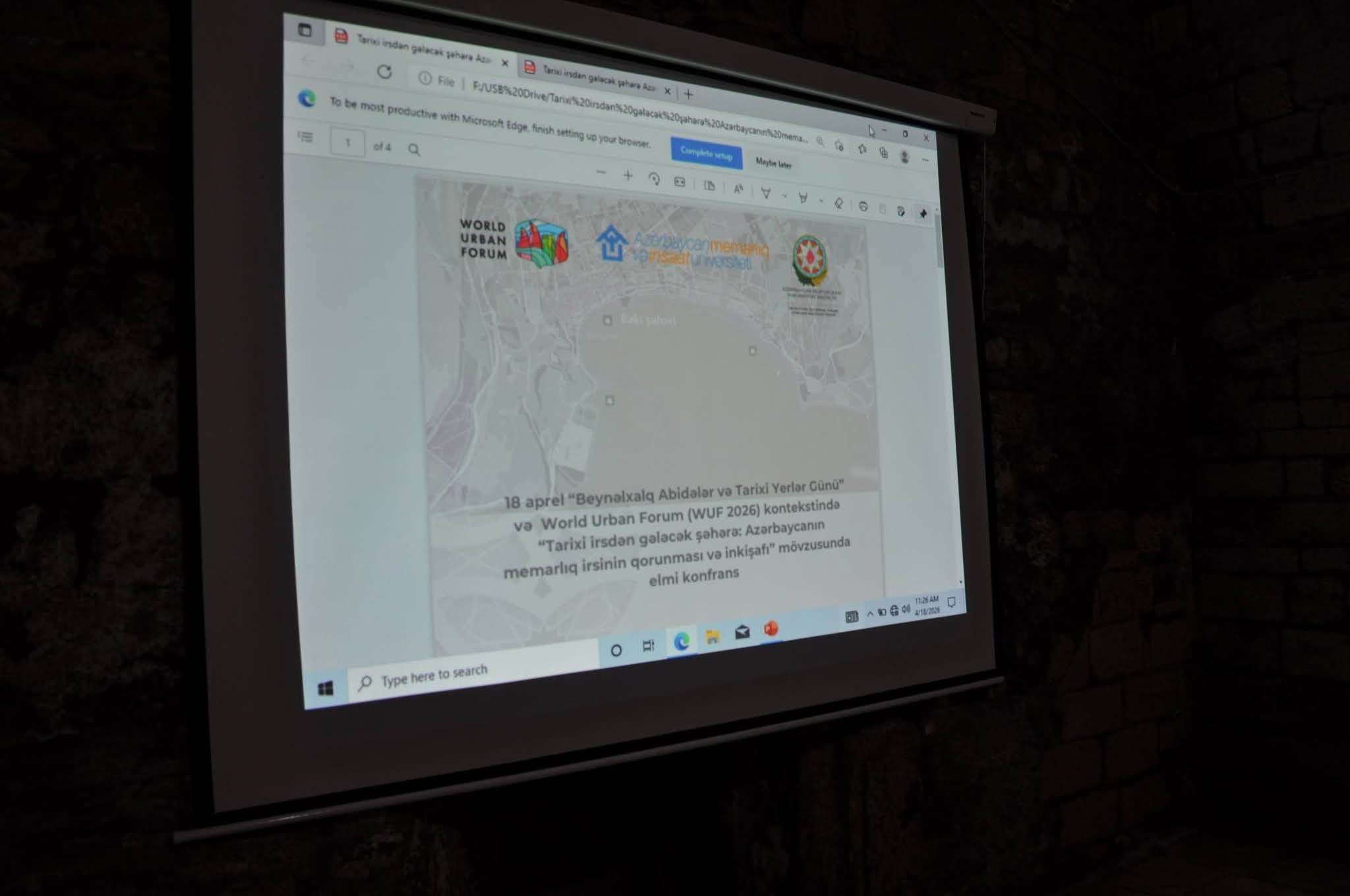 18 Aprel - Beynəlxalq Abidələr və Tarixi Yerlər Gününə həsr olunan tədbir Azərbaycanın zəngin və çoxşaxəli memarlıq irsinin qorunması strategiyalarının müzakirəsi, mövcud problemlərin və perspektivlərin müəyyənləşdirilməsi, həmçinin elmi-praktiki biliklərin mübadiləsi məqsədi daşıyır.